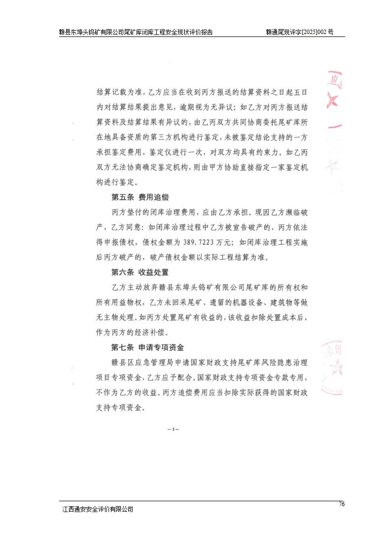 评价报告名称 | 赣县东埠头钨矿有限公司尾矿库闭库工程安全现状评价报告 | |||