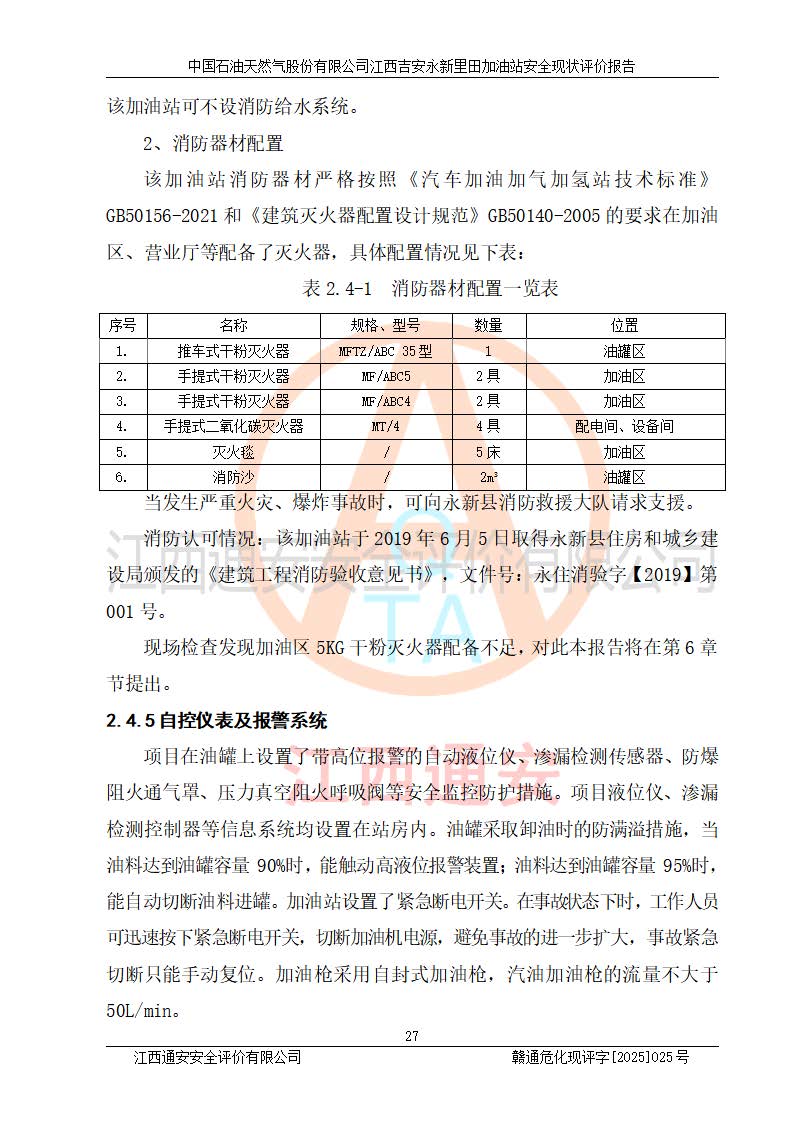 项目名称 | 中国石油天然气股份有限公司江西吉安永新里田加油站 | ||||