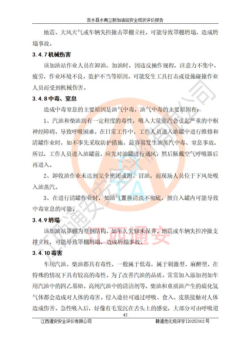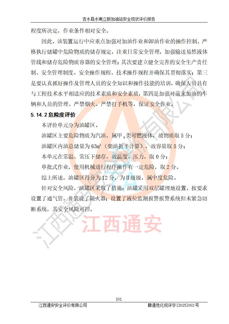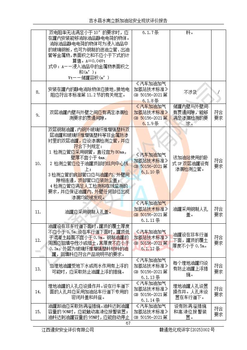 评价报告名称 | 吉水县水南立新加油站安全现状评价报告 | |||